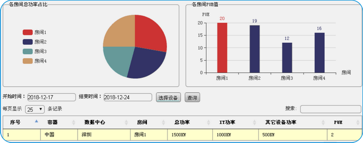 用電分析:從整體上了解各機房用電分布,根據日、月、年查詢各機房的用電量和總計,并計算各機房的百分比,并給出用電建議,用柱狀圖等展示數據。