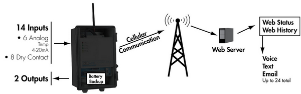 當檢測到報警,單元立即聯系Sensaphone服務器,并報警: