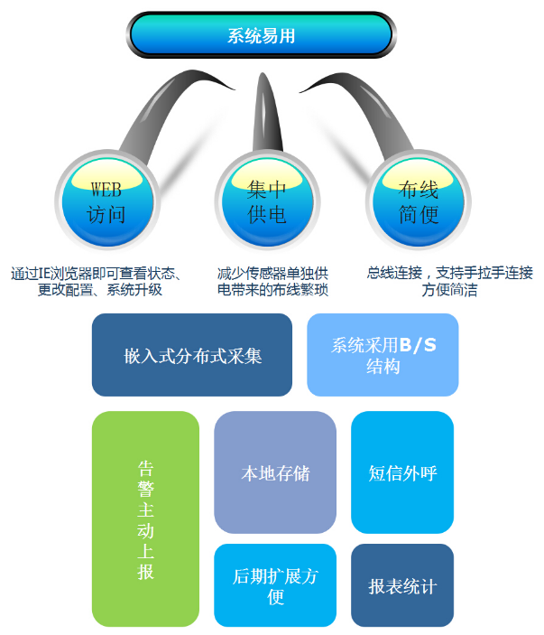 機房環境系統的的主要性能: 1.實時監控數據中心機房的供配電信息、精密空調末端信息、溫濕度、漏水等環境參數,可通過局域網上傳至統一網管監控機房(中心),實現統一監管。 2.系統監測到某參數超過安全閥值時,能提供界面報警、微信報警、多媒體語音報警、短信報警、電話報警等,并進行事件記錄,供調用和分析。 3.可通過遠程IE瀏覽器查看和管理監控系統,實時獲取事件信息,支持對遠程高級設置的設備進行設置。 4.系統提供標準的SNMP服務、ODBC數據源訪問接口,可將消防報警系統、門禁、數字視頻等與動力環境監控系統整體集成,以提高系統的擴展性、可靠性和管理效率。 5.通過快捷的建模工具構建數據中心機房的真實物理環境,以3D展示方式,提供場景漫游、基礎設施監控報警與定位、3D交互-測點信息查看、3D虛擬巡檢和機房告示信息發布等手段。 6.系統能記錄數據中心機房各類監控參數,并提供查詢、統計、報表等功能。 7.由于機房內有多套系統運行,且屬于不同單位,為了保證每套系統的獨立性及安全性,動環監控系統具有多級權限管理功能,通過劃分不同系統權限來進行管理。 機房環境系統實現了機房設備的統一集中監控,可對各種設備的狀態及參數實施時實監測與控制,并可診斷設備部件情況。本系統的成功應用,為用戶減輕了機房維護人員負擔,提高了系統的可靠性;更為重要的是融合了機房的管理措施 , 把機房各自獨立的運行設備有機的結合起來 , 可實現無人值守或少人管理,使機房達到一個全新的管理水平。