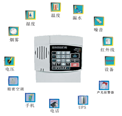 SENSAPHONE 400為用戶構建了經濟且強大工業及遠程環境解決方案,廣泛用于計算機房、通訊機房、精密空調間等。它實時檢測溫濕度、漏水電等4路傳感器狀態,一旦發現異常,除現場報警外,還拔打4個設置好的電話號碼或手機,并以真人發音方式播報故障消息,同時接受用戶指令以確認報警,真正實現無人值守。 SENSAPHONE 400 是一個完全修改的、環境的監控報警系統,廣泛用于農場、溫室、計算機房等。它可以掛壁安裝,其安裝、設置、操作非常的簡單;無需改變標準電力供應或電話服務。連接一條電話線路,它將聲音警報撥號4個獨立的電話號碼。單元需要后備電池,假使 AC 停電,六個C號電池 (不提供)將為單元提供約24個小時供電。