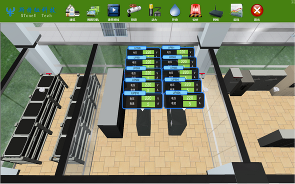 高度仿真 系統完全基于數據中心真實物理環(huán)境數據建立的三維模型組合而成。 系統內各設備的模型完全按照建筑物內各設備的真實物理模型建立。如UPS、空調、配電柜等設備,效果逼真擬人。